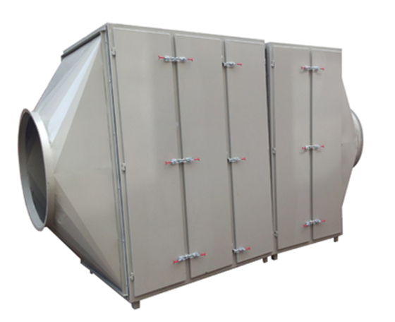 ①活性炭吸附單元在設備箱體內分層抽屜式安裝,能夠非常方便從兩側的檢查門取出。
